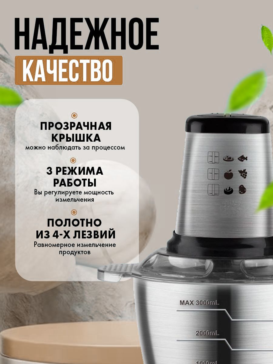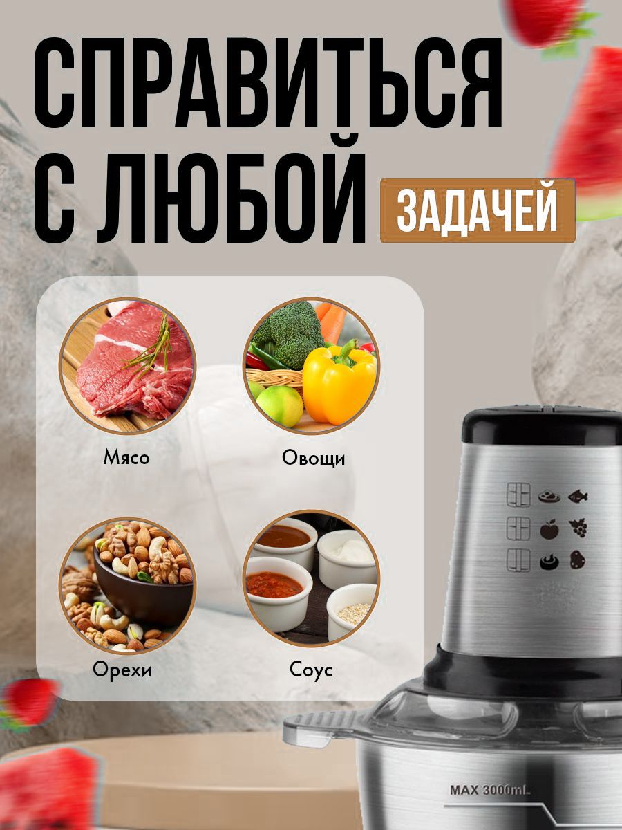 С щедрой емкостью этот электрический измельчитель идеально подходит для приготовления больших объемов пищи, экономя время и усилия