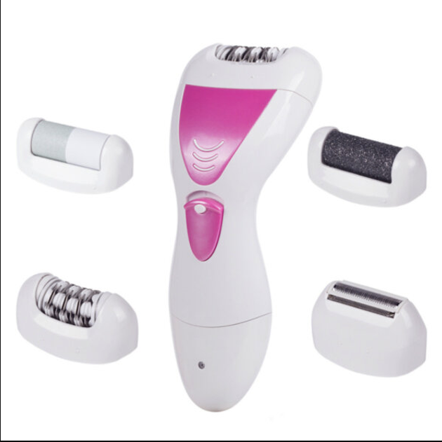 заменяет четыре отдельных устройства: эпилятор, бритву с триммером, насадку-пемзу для педикюра и насадку для филирования