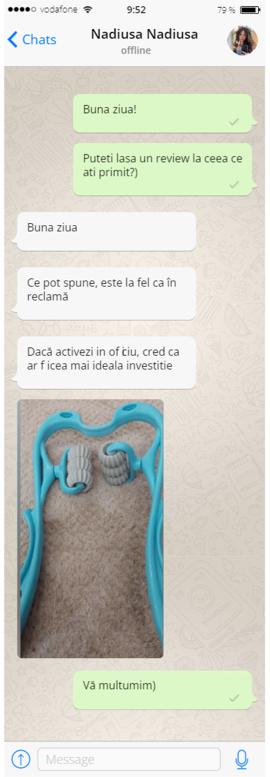 Aparatul de masaj portabil este un ajutor indispensabil pentru relaxarea mușchilor după o zi lungă de muncă și pentru îmbunătățirea sănătății. Masajul mecanic cu role pentru gât este potrivit pentru utilizare regulată și pentru persoane de diferite vârste. În prezent, aparatul de masaj portabil este cel mai solicitat pe piața de consum. Și acest lucru nu este surprinzător, deoarece are un număr foarte mare de avantaje, și anume: elimină spasmele și crampele musculare, stimulează circulația sângelui și nutriția țesuturilor, îmbunătățește alimentarea cu sânge a capului și, ca urmare, pielea este mai bine aprovizionată cu sânge, îmbunătățește tenul. Frământă eficient rola de grăsime (coccisul, cocoașa văduvei) de la baza gâtului