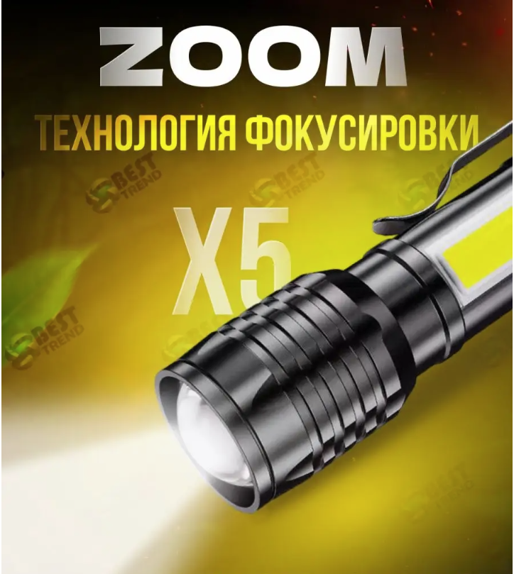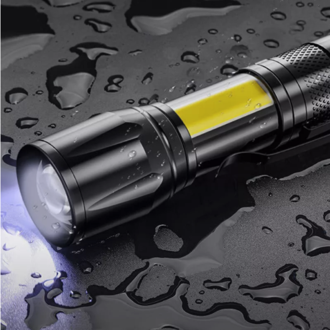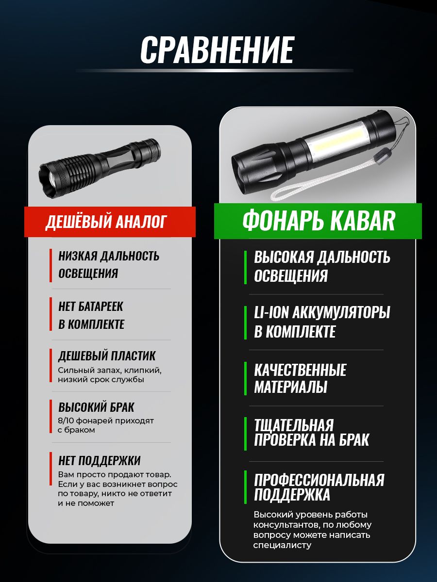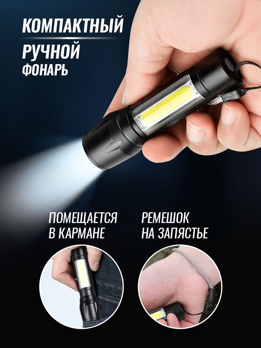Мощный светодиодный фонарик уверенно освещает до 300 метров, обеспечивая яркий и четкий свет даже в самых темных условиях
