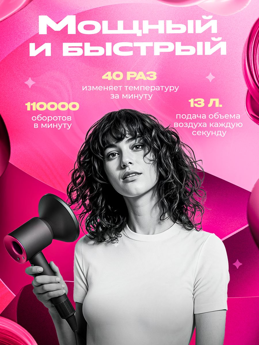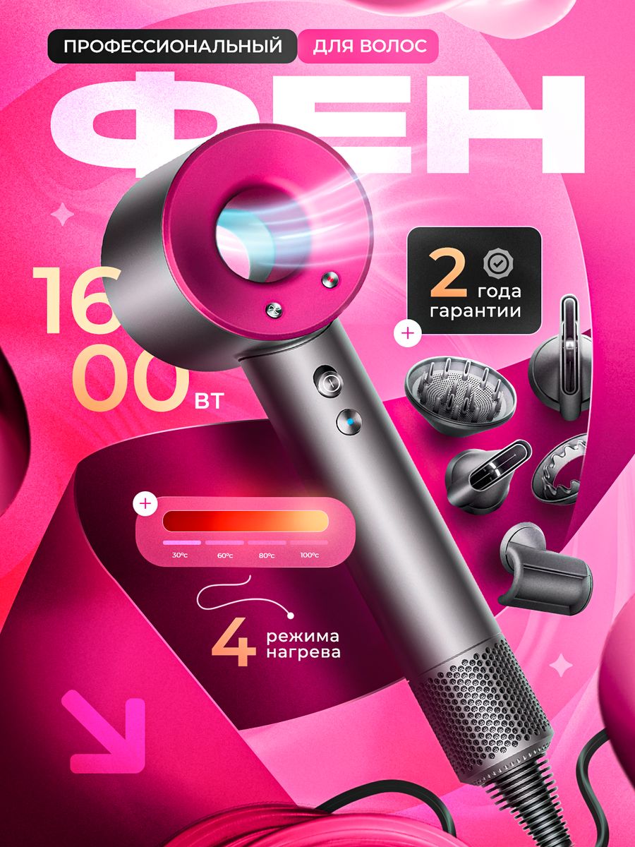 Фен для волос профессиональный - мощный прибор быстро высушивает, придает объем, создает красивую укладку