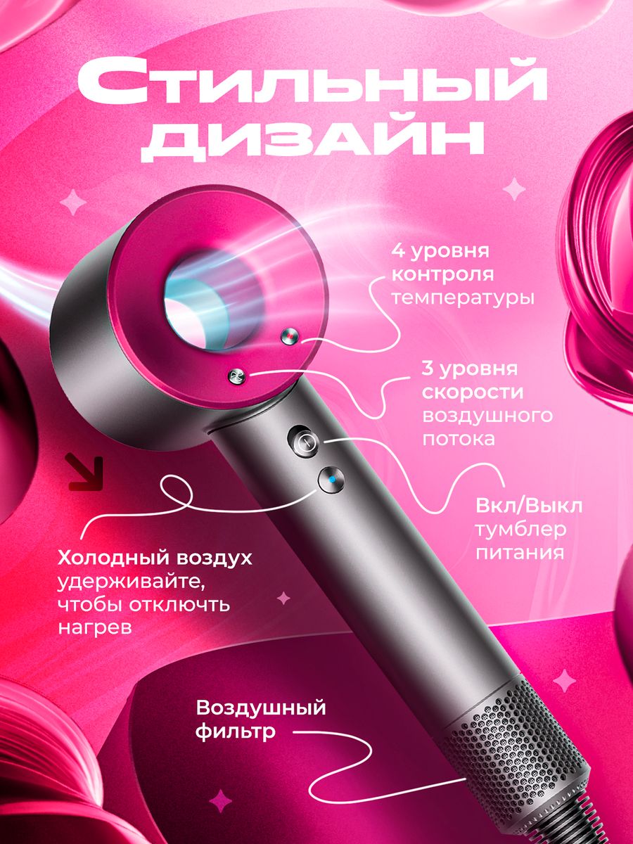 Этот мощный фен обеспечивает мощный воздушный поток для быстрой сушки и создания идеальной прически на любых волосах, можно использовать как фен стайлер, расческа. Фен для волос с насадками для укладки подходит для всех типов волос - длинных, коротких, прямых, волнистых, непослушных, а также волосах любой густоты.